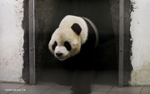 Giant panda Xing Hui walks at the Pairi Daiza Zoo in Brugelette, Belgium, on April 4, 2015. A pair of giant pandas from China, Xing Hui, the male, and Hao Hao, the female, was available to visitors again after the zoo reopened to public after the winter. The pandas from Sichuan Province of China arrived here in February 2014 and will stay for 15 years. Photo: Xinhua