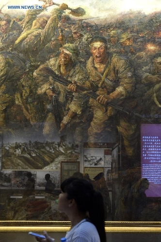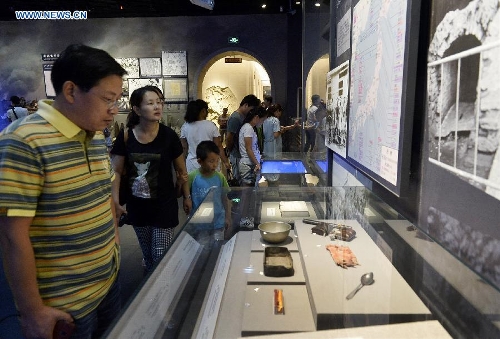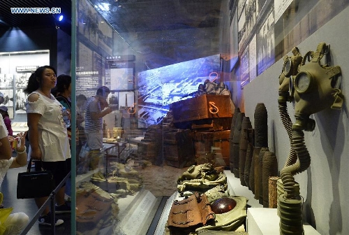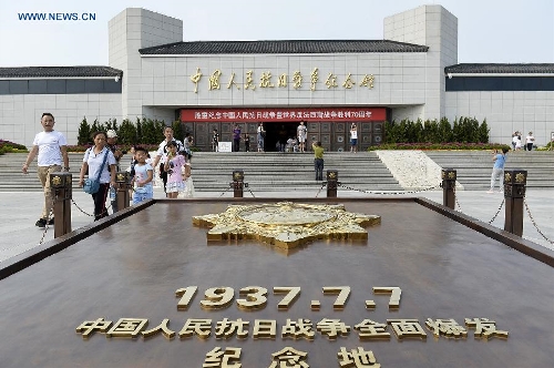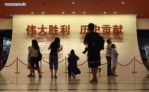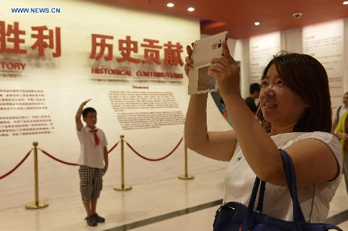 People visit the Museum of the War of Chinese People's Resistance against Japanese Aggression, in Beijing, Capital of China, Aug. 29, 2015. China will stage a military parade on Sept. 3 to commemorate the 70th anniversary of the victory of the Chinese People's War of Resistance Against Japanese Aggression and the World Anti-Fascist War. (Xinhua/Peng Zhaozhi)
