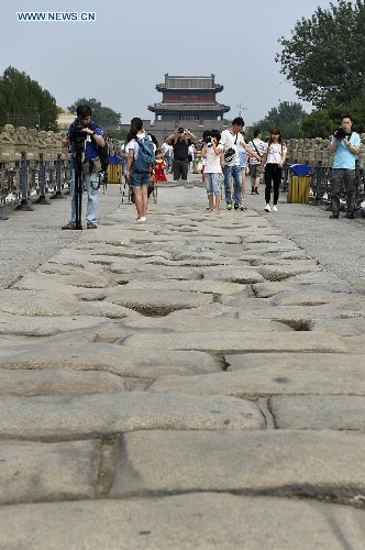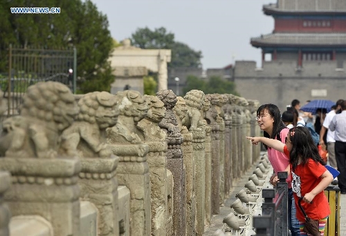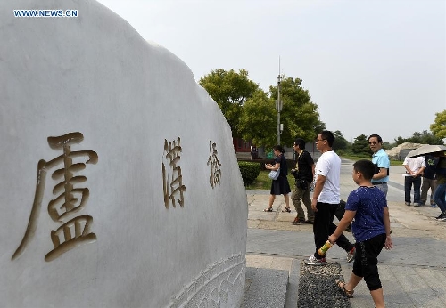 People visit Lugou Bridge where Japan launched the all-out war of aggression against China, in Beijing, Capital of China, Aug. 29, 2015. China will stage a military parade on Sept. 3 to commemorate the 70th anniversary of the victory of the Chinese People's War of Resistance Against Japanese Aggression and the World Anti-Fascist War. (Xinhua/Peng Zhaozhi)