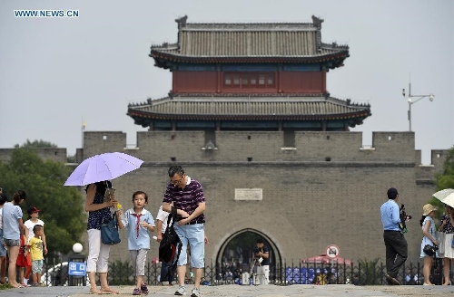 People visit Wanping town where the Japanese invaders bombarded on July. 7, 1937, east of Lugou Bridge, in Beijing, Capital of China, Aug. 29, 2015. China will stage a military parade on Sept. 3 to commemorate the 70th anniversary of the victory of the Chinese People's War of Resistance Against Japanese Aggression and the World Anti-Fascist War. (Xinhua/Peng Zhaozhi)
