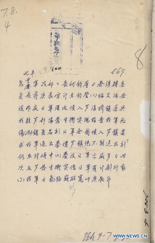 The State Archives Administration has published a video series on the War of Resistance Against ese Aggression to depict historical events and honor the Chinese fighting spirit. The first part of the series on the July 7 Incident in 1937 was released on Aug. 25 by the administration's official website. Photo: Xinhua