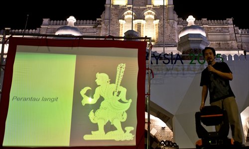 Darth Vader's distinctive helmet-headed silhouette swoops in to seize control of a spaceship, but this is not the movies - instead his movements are being brought to life by a Malaysian shadow-puppet master behind a back-lit screen.