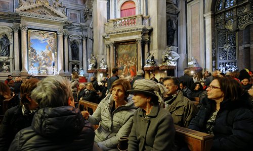 People gather at the Saint Januarius chapel in the Dome of Naples on Saturday. Photo: AFP