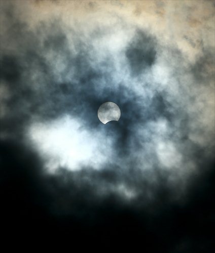 Partial solar eclipse is visible in Shanghai Wednesday morning as the moon covered a small portion of the sun. People in areas of the Pacific and parts of Southeast Asia and Australia witnessed the extraordinary astronomical scene. Photo: Yang Hui/GT