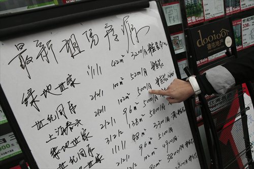 A Shanghai agent shows a client different rental prices in a 2012 photo. Photo: CFP