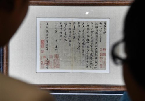 Jushi Tie by Northern Song Dynasty (960-1127) scholar Zeng Gong on display at the China Guardian 2016 Spring Auction in Beijing on Sunday Photo: Xinhua