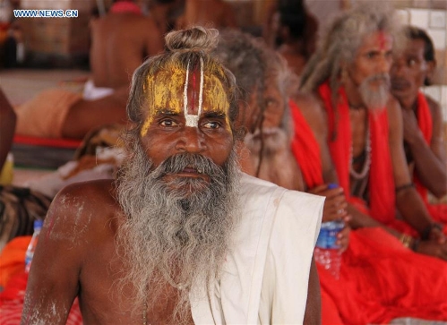 A sadhu waits for registering of the coming annual Amarnath Yatra at a base camp near Amarnath cave in Jammu, Indian-controlled Kashmir, June 27, 2016. Thousands of Hindu devotees will join the yearly pilgrimage that starts on July 2 this year, to see an ice stalagmite formed inside the cave. (Xinhua/Stringer)