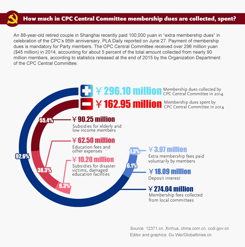 How much in CPC Central Committee membership dues are collected, spent?