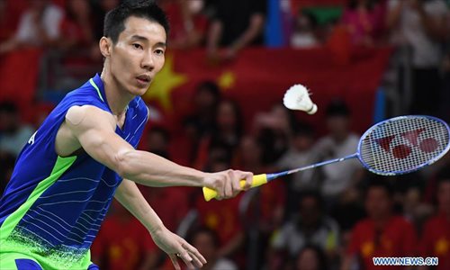 Malaysia's Lee Chong Wei competes during the men's singles gold medal match of badminton between China's Chen Long and Malaysia's Lee Chong Wei at the 2016 Rio Olympic Games in Rio de Janeiro, Brazil, on Aug. 20, 2016. Malaysia's Lee Chong Wei won the silver medal.(Xinhua/Lui Siu Wai)