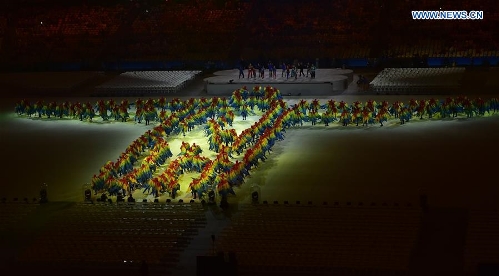 Artists perform during the closing ceremony of the 2016 Rio Olympic Games at the Maracana Stadiumin Rio de Janeiro, Brazil, Aug. 21, 2016. (Xinhua/Zheng Huansong)
