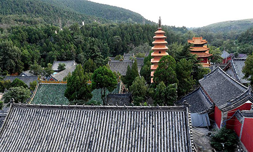 Photo taken on Aug. 30, 2016 shows an aerial view of Fengxue Temple in Ruzhou City of central China's Henan Province. Renowned in Ruzhou, the unique Fengxue Temple has a history of over 1,800 years. (Xinhua/Li An)