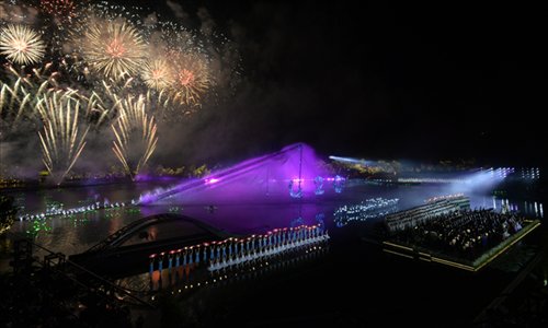 Performers stage a gala featuring Chinese culture at the West Lake in Hangzhou, Zhejiang Province on Sunday. World leaders attending the G20 summit graced the show directed by renowned movie director Zhang Yimou. Photo: Xinhua