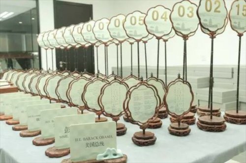 Silk table number cards for the G20 welcome banquet. Photo: thepaper.cn