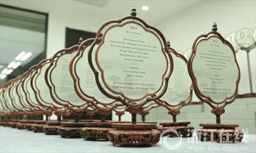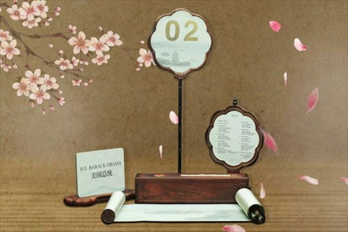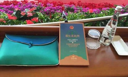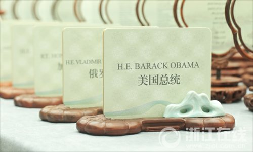 Silk place cards at the G20 welcome banquet. Photo: zjol.com.cn