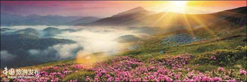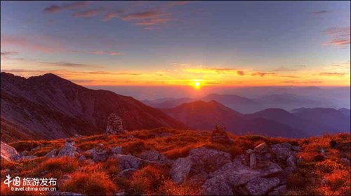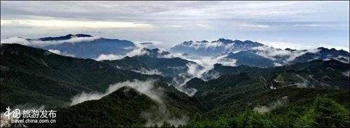 Mount Taibai, which is more than 2,600 meters high, is the highest point of the Qin Mountains. Its so-called "Summer Snow" is one of the top eight scenic attractions of Chang'an (ancient Xi'an city). It stands at the north of the Qin Mountain Range and extends across three counties – Mei county, Taibai county and Zhouzhi county. It lies 70 kilometers to the east of Xi’an city and boasts awesome cliffs. The famous poet of the Tang Dynasty (AD 618-907), Li Po, depicted it thus: "It neighbors the moon and even dwarfs the whole world." (photo/China.org.cn)