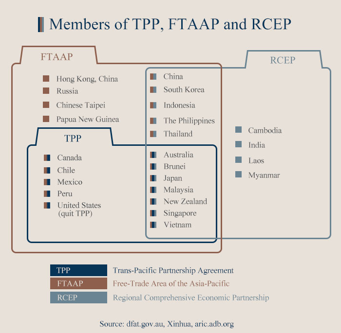 Members of TPP, FTAAP and RCEP