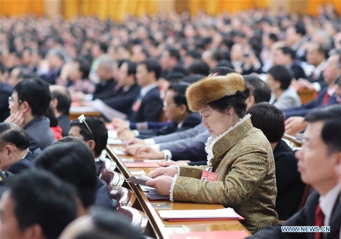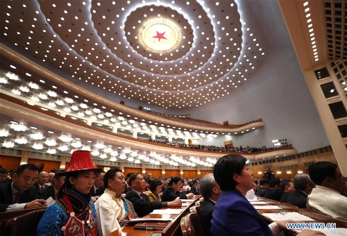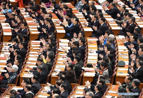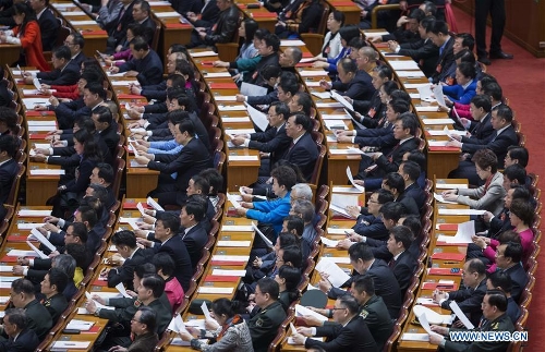 Deputies to China's 12th National People's Congress (NPC) attend the closing meeting of the fifth session of the 12th NPC at the Great Hall of the People in Beijing, capital of China, March 15, 2017. (Xinhua/Ding Lin)