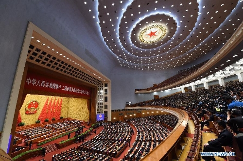 The closing meeting of the fifth session of the 12th National People's Congress is held at the Great Hall of the People in Beijing, capital of China, March 15, 2017. (Xinhua/Cui Xinyu)