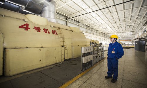 Chief operator Liu Yong stands in front of the Huaneng Beijing Thermal Power Plant No.4 unit on Saturday. Photo: CFP