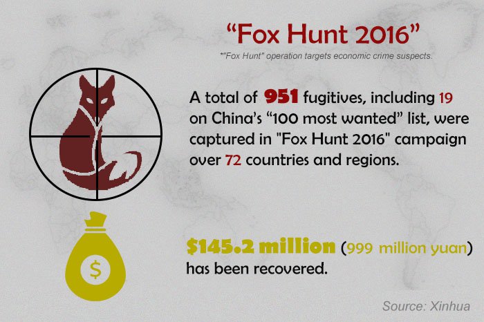 951 Chinese fugitives abroad captured in "Fox Hunt 2016" campaign: Public Security Ministry