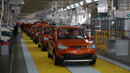 Workers assemble rolls of new-energy vehicles in a BAIC Motor plant in Qingdao, East China's Shandong Province in November 2016. Photo: IC