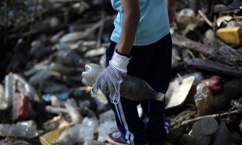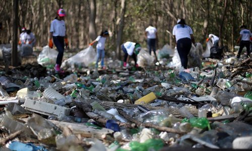 Volunteers collect garbages to mark the World Earth Day in Panama City, capital of Panama, on April 22, 2017. (Xinhua/Mauricio Valenzuela)