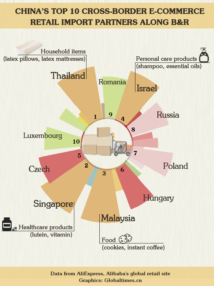 China’s top 10 cross-border e-commerce retail import partners along B&R