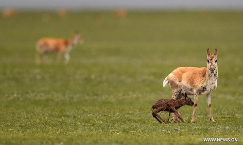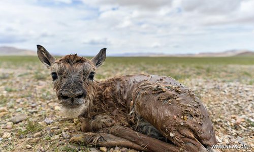 A newly-born Tibetan antelope lamb stays at Changtang National Nature Reserve in southwest China's Tibet Autonomous Region, June 24, 2017. It is breeding season of Tibetan antelopes at Changtang. There are over 3,000 ewes awaiting delivery or just delivered simply at the reserve in Qiuka region of Xainza County. The total number of Tibetan antelopes has risen to more than 200,000 at Changtang. With an area of 298,000 square km and an average altitude of 5,000 meters, Changtang is China's biggest and highest reserve. The area is located in northern Tibet where few humans reside, however, it is a wildlife paradise, and home to a variety of wildlife species and numerous lakes. More than 40 species of rare wild animals including Tibetan antelopes, Tibetan wild donkeys, Tibetan yaks and black-necked cranes living in the region.(Xinhua/Purbu Zhaxi)