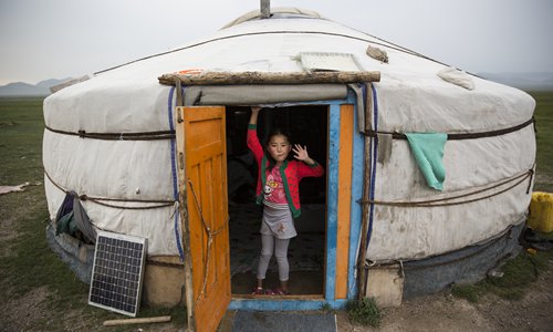 A girl stands in the doorway of her family's ger in Altanbulag. Photo: IC
