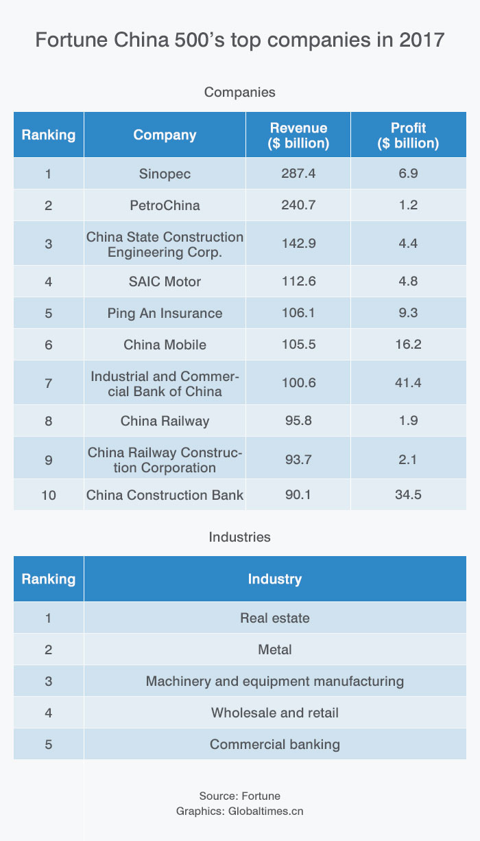 Sinopec, PetroChina, CSCEC top Fortune China 500 list