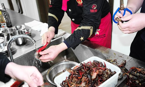 Students learn how to cook crayfish at the Jianghan Art Vocational College in Hubei Province. Photo: IC