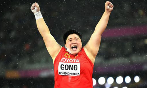 Gong, 28, won the competition by over one meter with a fifth round 19.60 meters. Five of her six shots outnumbered 19 meters. Even the worst toss - 18.81 meters - would have sufficed for the victory.