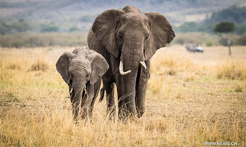 Two elephants walk at the Maasai Mara National Reserve, Kenya, Aug. 28, 2017. (Xinhua/Lyu Shuai)