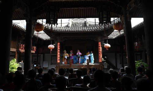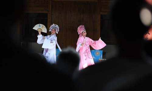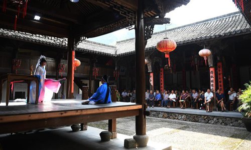 Actors perform Chinese traditional Shaoxing Opera in Xianju County of Taizhou, east China's Zhejiang Province, Sept. 13, 2017. (Xinhua/Huang Zongzhi)