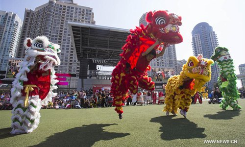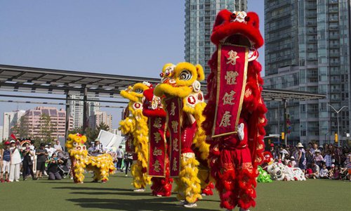 Lion dance teams perform during the 2017 Dragon Lion Dance Festival in Mississauga, Ontario, Canada, Sept. 24, 2017. Photo: Xinhua