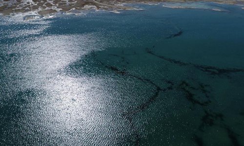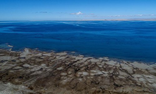 Aerial photo taken on Oct. 19, 2017 shows the floodplain of Qinghai Lake, China's largest inland saltwater lake, in northwest China's Qinghai Province. The surface area of Qinghai Lake reached 4,497.01 square km, the highest record since 2001, according to data from the Qinghai Institute of Meteorological Sciences. Qinghai Lake plays an important role in the ecological security of the Qinghai-Tibet Plateau. It has been expanding since 2005 thanks to abundant precipitation in surrounding areas and increased snow melt due to climate change. (Xinhua/Wu Gang)