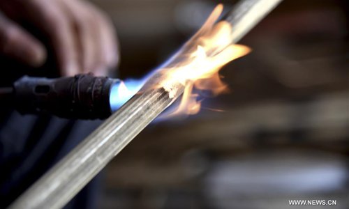 A villager bake bamboo over the fire to shape it in Banqiao Town of Zunyi City, southwest China's Guizhou Province, Nov. 8, 2017. Bamboo weaving industry has a history of over 50 years in the town. (Xinhua/Luo Xinghan)