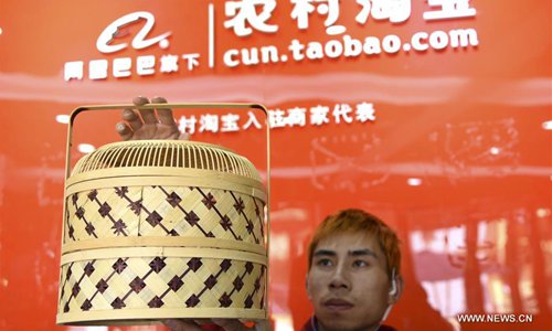 Villager Ma Ruifeng shows a bamboo container in Banqiao Town of Zunyi City, southwest China's Guizhou Province, Nov. 8, 2017. Bamboo weaving industry has a history of over 50 years in the town. (Xinhua/Luo Xinghan)
