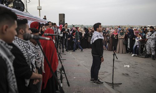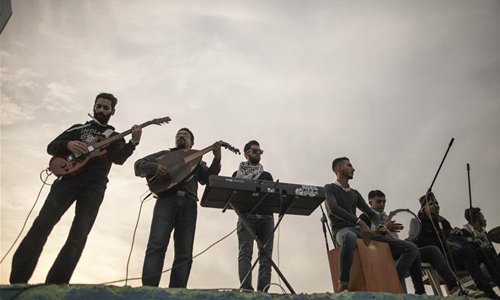 Members of a Palestinian music band perform to express their support with Palestinian reconciliation in Gaza, on Nov. 12, 2017. Photo: Xinhua