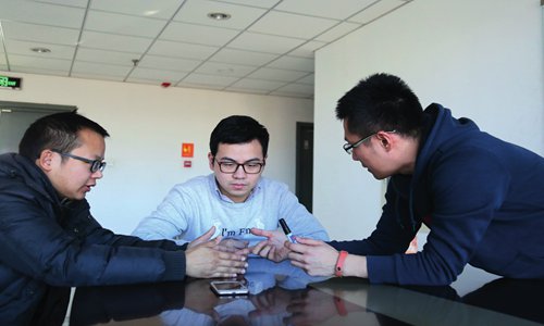 Students discuss a project outside of class hours at the Future Information Technology (FIT) building at Tsinghua. Photo: Chen Ximeng/GT