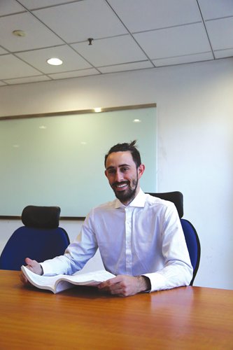 Thiago De Sousa Silveira reads a research journal in the Future Information Technology building at Tsinghua University. Photo: Chen Ximeng/GT