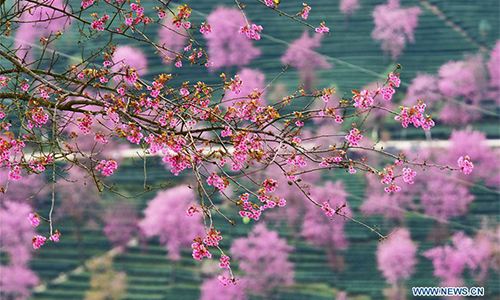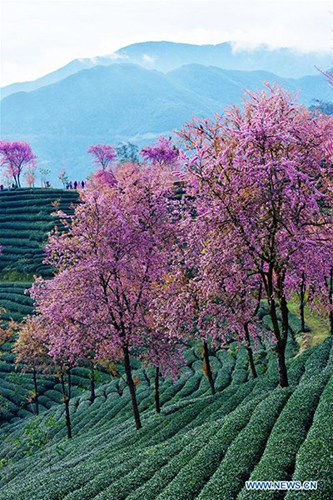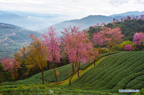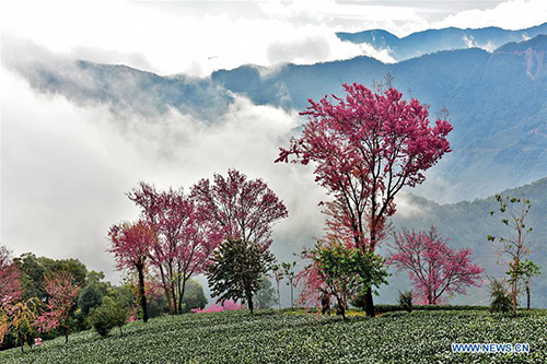 Photo taken on Dec. 9, 2017 shows cherry blossoms at Wuliang Mountain in Nanjian County, southwest China's Yunnan Province. (Xinhua/Shi Zhihong)