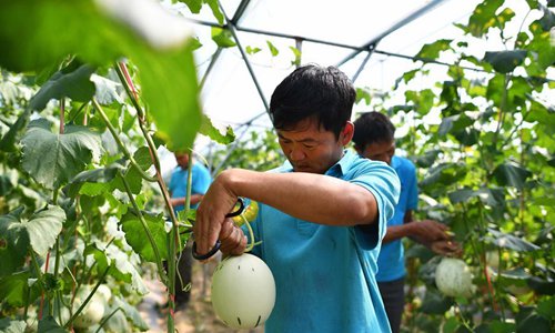 Farmers pick honeydew melons in Foluo Town of Ledong County, south China's Hainan Province, Dec. 9, 2017. The total sales of Ledong County increased from 800 million of last year to 1.8 billion Yuan during the Hainan International Winter Trade Fair of Tropical Agricultural Products among which honeydew melons account for 730 million Yuan.Photo: Xinhua