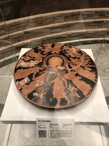 Lekanis' lid depicting a Dionysian scene exhibited in the museum was made by the red-figure technique in the second half of the 4th century BC. Found in 1956 in a household cistern dating back to the 2nd century BC, it is one of the most impressive exhibits of Acropolis Museum today.