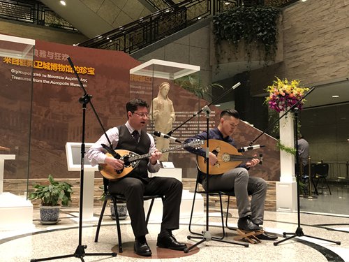 An exhibition of collections from the Acropolis Museum of Greece kicked off at Shanghai Museum on Wednesday, with the joyous rhythm of traditional Greek music played by Vassilis Xiros, Consul General of Greece in Shanghai, and a Malaysian musician, Kian.