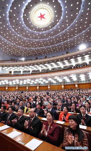 The closing meeting of the First Session of the 13th National Committee of the Chinese People's Political Consultative Conference (CPPCC) is held at the Great Hall of the People in Beijing, capital of China, March 15, 2018. (Xinhua/Pang Xinglei)