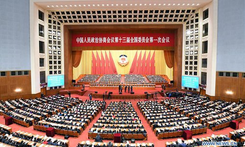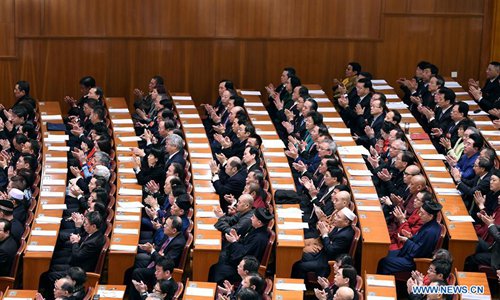 The closing meeting of the First Session of the 13th National Committee of the Chinese People's Political Consultative Conference (CPPCC) is held at the Great Hall of the People in Beijing, capital of China, March 15, 2018. (Xinhua/Yan Yan)