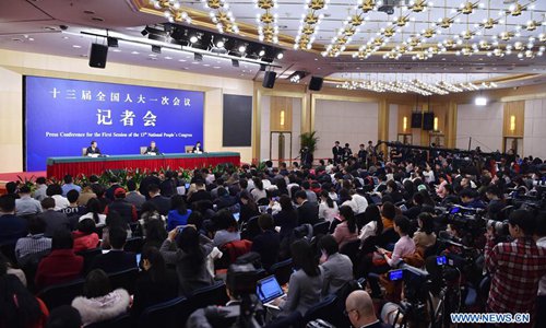 A press conference on China's efforts on providing fair education of good quality is held on the sidelines of the first session of the 13th National People's Congress (NPC) in Beijing, capital of China, March 16, 2018. (Xinhua/Li Xin)