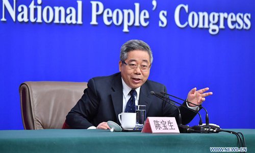 China's Minister of Education Chen Baosheng answers questions at a press conference on China's efforts on providing fair education of good quality on the sidelines of the first session of the 13th National People's Congress (NPC) in Beijing, capital of China, March 16, 2018. (Xinhua/Li Xin)