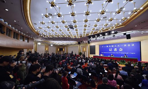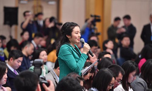 A journalist asks questions at a press conference on the battle against pollution on the sidelines of the first session of the 13th National People's Congress (NPC) in Beijing, capital of China, March 17, 2018. Photo: Xinhua